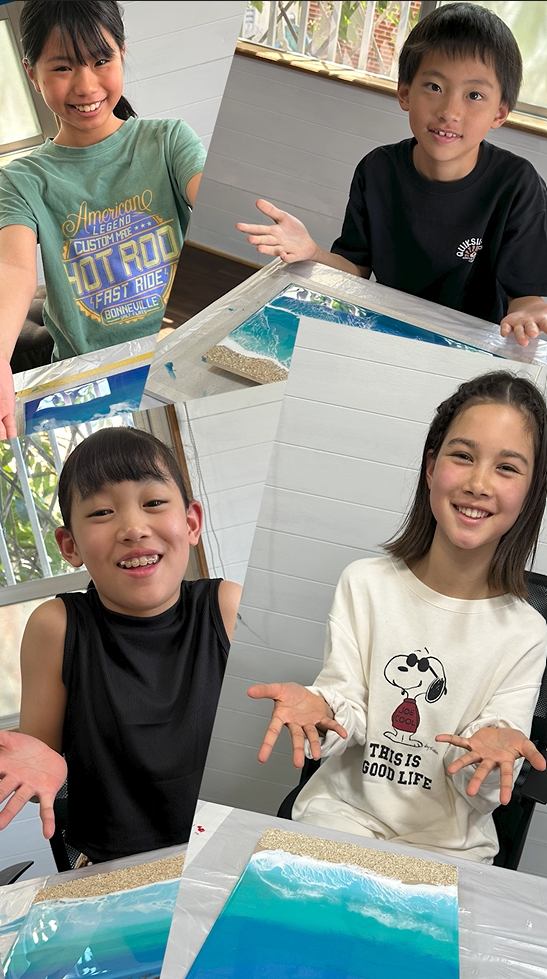 初めてのレジンアート体験でした!教えて下さった方は島の方で優しく丁寧に教えてくださり、みんなと話しながら楽しく作品作りに取り組めました。好きな写真を使って作品を作れたのも良かったです。あっという間の時間を過ごさせていただきました。作品が届くのを楽しみにしています!