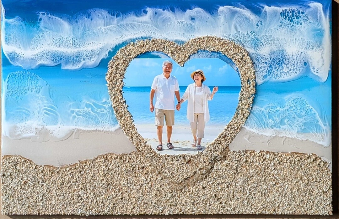 思い出の写真と美しい海のアートを組み合わせた、世界に一つだけのフォトフレームを作れます。